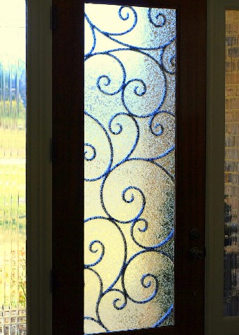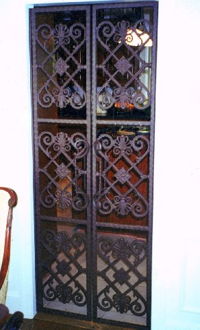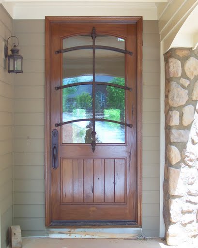 The iron scroll work on this front door grill really adds a nice artistic look from both inside and out.