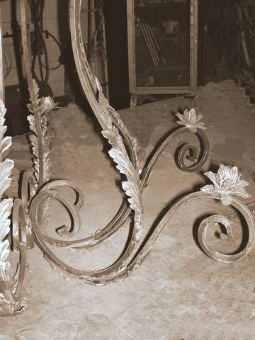 This hand rail was forged out of 5/8" solid bar, it was all free form, with no real rhyme or reason, it was used next to an iron door and that's were the idea came from.