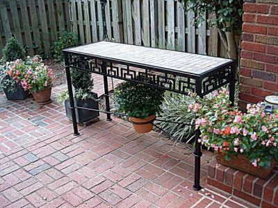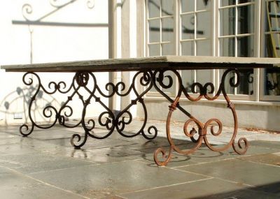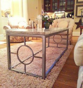 There was a pair of estate garden gates, one of them ended up at our studio and was made into this beautiful coffee table. The gate portion was clear coated to leave the natural aged patina.