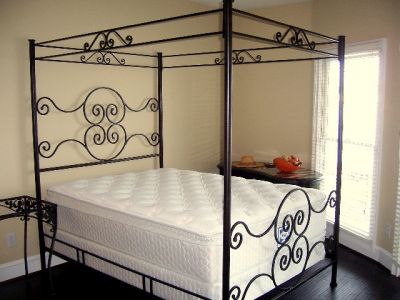 A Designer commissioned us to create this contemporary iron canopy bed for the Symphony Guild designer showcase at the Met Terraces this year. It was made to be adjustable from 8 foot to 9 foot depending on your ceiling height. A very clean fresh look...