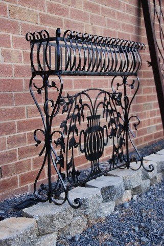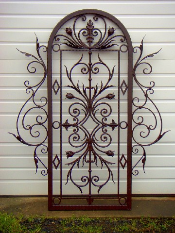 When our client looked out her upstairs bedroom window, all she saw wan the AC unit on the ground. So We came up with this wrought iron screen to obstruct the view with something pleasing to look at.