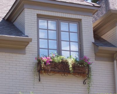 This started its life as a wall planter that we cut down, but our customer thought it would be better as a planter. We added scroll leaf legs to make it a free standing planter box for under a patio window.